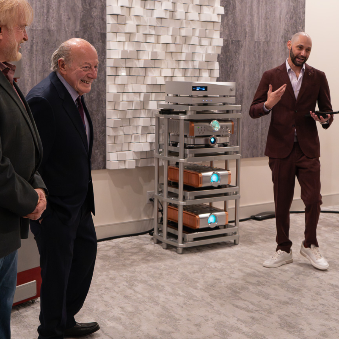 The evening was made even more memorable with a visit from legendary designer Dan D’Agostino himself. During his presentation, Dan shared stories from decades of designing some of the world’s most respected high-end audio equipment and offered insight into the philosophy behind his work. He spoke about how much of his creative process begins with intuition—trusting his ears and musical instincts before anything else. That intuitive approach, combined with meticulous engineering, has helped shape the signature sound that defines Dan D’Agostino Master Audio Systems.